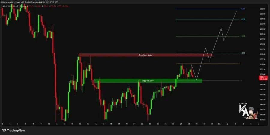 As of October 30, 2025, SOL's latest trading price fluctuated around US$194.27, with a highest hitting US$201.70 and a lowest falling to US$189.37 within 24 hours, with the market value remaining at US$106.87 billion. After experiencing a correction from around $210 in mid-October, the currency is now in a critical long-short game stage. Its short-term trend is closely related to the persistence of support levels, breakthroughs in resistance levels, and market capital trends. ![]() SOL's current core support level is focused around $195. The price has tested resilience in this range many times before, while the deeper support range is between $174 and $175. In terms of resistance, US$205 has become a key node in the short term. If it can stabilize at this price, it is expected to gradually advance to US$215, US$222 and US$227, and further touch the resistance area of 220-230 US dollars. It is worth noting that data on October 30 showed that an ancient whale transferred 200,000 SOL worth US$40 million to Coinbase Prime, and traders also opened nearly US$100 million in SOL leveraged long positions. This type of large capital movement provided certain support for the price. ![]() In terms of trading volume, SOL's recent 24-hour trading volume reached US$7.06 billion, with daily trading volume increasing by 4%, and the open interest volume of the Chicago Mercantile Exchange's SOL futures contract reached a record high of 15,600 contracts. This level of trading volume reflects the gradual increase in the participation of retail investors and institutions. The Nasdaq-listed Solana Company has also increased its holdings of approximately 1 million SOLs in the past two weeks, and its current holdings have exceeded 2.3 million. The continued deployment of institutions has also enhanced market liquidity. At the technical and ecological level, Solana's upcoming Alpenglow upgrade has received an approval rate of 99.6%. After the upgrade, the transaction confirmation time will be shortened to 150 milliseconds. At the same time, its 30-day transaction volume in the DeFi field has reached 129 billion US dollars, surpassing Ethereum's data for the same period. However, we need to be wary of risks. If the $195 support level falls, the price may drop further, and the proportion of transactions related to daily real user activity on the chain is not high, which may also affect price stability. Overall, the key to SOL's short-term trend is whether it can break through the $205 resistance level. If the breakthrough is effective, there is a high probability of opening an upward channel to the $220-$230 range. ; If the support level falls, you need to be alert to the risk of a correction. Investors can focus on price breakthrough signals and trading volume changes to grasp market trends. That’s it for today’s article. We are currently in a bull market and the situation is turbulent. We share passwords every day. If you don’t know what to do in the bull market, you are welcome to scan the code to join the group for free. The spot code and layout strategy of the bull market can be shared for free. Welcome to private message me to join us. ![]() |