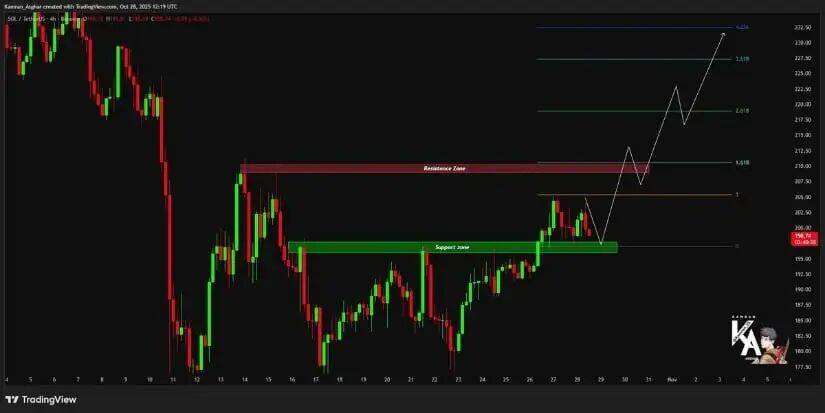 If you don’t know what to do in the bull market, you are welcome to scan the code to join the group for free. The spot code and layout strategy of the bull market can be shared for free. Welcome to private message me to join us Penguin number can be added: 3838974575![]() Solana price is showing renewed strength as both major and institutional investors take a bullish stance, with the price consolidating near key support levels in preparation for a potential breakout. Solana’s recent price action has once again attracted attention, with whales and institutional investors beginning to take a bullish stance. After weeks of sideways trading, on-chain optimism remains high amid leveraged trades, ETF market optimism and continued strength near key support levels. Buy Driven by this, its rising momentum is quietly build up。 ![]() Crypto whales bullish on SolanaAsh Crypto Latest data shared It shows that a well-known large investor with a winning rate of 100% doubled down on his long position. He not only significantly increased his long position in Bitcoin, but also opened a long position in Solana with 10 times leverage. This synchronized position building of Bitcoin and Solana indicates that there may be a wave of rising prices in the future. ![]() This positioning further strengthens the bullish thesis as Solana consolidates near key technical support while Bitcoin shows strong trend continuation. Institutional buying boosts Solana outlookinstitutional capital inflows It seems to confirm this view. according to Whale Insider According to reports, Bitwise clients purchased $69.5 million worth of Solana (SOL), a huge investment stemming from growing market expectations that Solana may receive ETF approval. The inflow also marks one of Solana’s largest recent capital allocations. Ongoing buying from institutional investors has been a stabilizing force for Solana's stock price, helping it absorb volatility even during broader market corrections. Liquidity continues to tighten as large institutions choose to accumulate rather than sell, setting the stage for a strong upside expansion once momentum returns. Solana Price Prediction: Triangle Breakout Could Take Price Target To $400According to Azyra Visualization chart, Solana’s macro structure still presents a large symmetrical triangle . Price action is fluctuating between two converging trend lines, with current support near $180 to $190 and resistance near $260 to $270. Judging from historical experience, this macro triangle often heralds an explosive breakout once momentum and liquidity inflows converge. ![]() If the price of Solana can break through the upper boundary, according to predictions, its price Expected to rise to $400 or even higher, in line with analysts' forecasts. This move is similar to Solana's expansion pattern in 2021, where the price structure tilts toward the bulls, followed by an extended period of consolidation, followed by a vertical acceleration in price. Successful retesting may lay the foundation for subsequent workKamran Asghar latest analysis pointed out that Solana has successfully retested $195, and the previous resistance level has now turned into a support level. Holding this area is technically crucial as it coincides with both the horizontal structure and the Fibonacci retracement levels. ![]() If SOL Solana stock price Stay above $195 , the next short-term target is $207, Followed by $230 To $235, these targets are based on the Fibonacci extension levels of 2.618-3.618. Each backtest within this range reinforces the validity of the breakout, suggesting that the current consolidation may be preparation for the next pulse-like rally. $189 identified as critical supportFrom Ali Martinez Data on the chain Further confirmation of Solana's solid foundation of support. According to Glassnode’s cost basis heat map, the trading volume of more than 24.5 million SOL Between $188 and $190 , forming one of the largest buying gathering areas in this cycle. ![]() This accumulation range constitutes a strong defensive area where long-term holders will continue to increase their holdings. As long as Solana's price remains above this range, downside risks appear to be limited, providing the necessary structural support for continued price increases. Summary: Smart money and institutional investors drive Solana price upBoth on-chain and off-chain data show that the market is confident in Solana’s development prospects. Institutional inflows, whale holdings, and solid technical formations have combined to create one of the strongest bullish environments in months. Sustaining above $189 to $195 remains a key condition for extending the rally. And breakthrough $260 may trigger Momentum hitting $400 . As market sentiment stabilizes and liquidity builds, Solana appears poised to regain its leading position among Tier 1 assets, supported by both price structure and real capital inflows. If you don’t know what to do in the bull market, you are welcome to scan the code to join the group for free. The spot code and layout strategy of the bull market can be shared for free. Welcome to private message me to join us Penguin number can be added: 3838974575![]() |