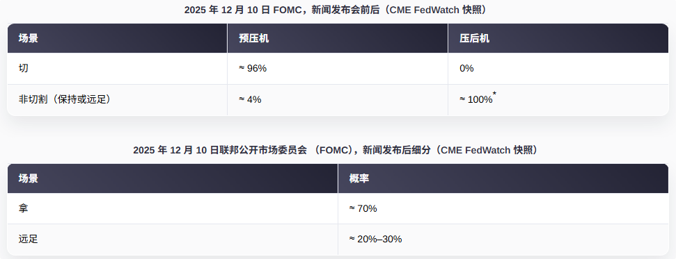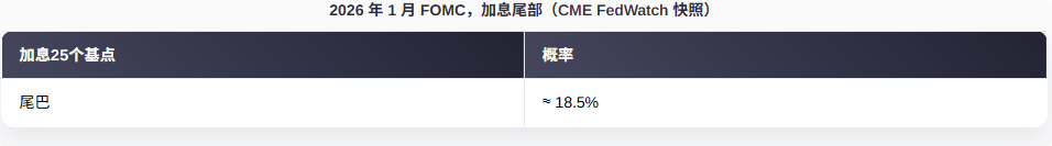 After the press conference, as the base case with a real-time rate hike tail, the odds shifted from an all-but-locked additional rate cut to on hold, with the interest rate path distribution rising and flattening in 2026, according to CME FedWatch data. This adjustment leaves cryptocurrencies facing a stickier liquidity backdrop, tighter sensitivity to incoming macro data, and wider dispersion among coins. ![]() January 2026 remains on the tail end of a rate hike near 18.5%, according to FedWatch data, reflecting lingering concerns that sticky inflation could pull the committee toward a reversal if data does not cool. ![]() The long-term path reprices higher. By 2026, the FedWatch distribution shifted a total of about 25 basis points upward and leveled off, with model results clustered around 3.00% to 3.25% by mid-to-late 2026 and continuing into 2027. Previous snapshots suggested a tilt toward 2.75% to 3.00% by the end of 2026. The profile implies fewer rate cuts, with markets pricing in a higher neutral real rate than earlier estimates. ![]() Direct market interpretation of cryptocurrencies relates to liquidity and interest rates.A longer-term higher stance supports the dollar and keeps real yields firm, which tends to weigh on high-beta risk and longer-term narratives related to long-term cash flows. Bitcoin tends to absorb this impulse with less retracement than smaller market cap coins and alt-L1s. However, broad cryptocurrency liquidity, including stablecoin floating and perpetual leverage, still reflects the same macro environment. As balance sheet drains continue and policy rates rise, the cost of capital within the crypto ecosystem remains constrained, with Treasury alternatives pulling some marginal demand out of basis and spread structures. Streaming becomes more data dependent. Spot ETF and fund allocations are sensitive to rate hike tail swings around major data. Upside inflation or red-hot labor data tend to increase the likelihood of near-term rate hikes and stress risks, while overt deflation could reopen demand for duration and growth proxies. As probabilities move, this environment favors faster rotations between BTC and altcoins, with allocators favoring higher quality balance sheet and liquidity pairs when uncertainty increases. Policy uncertainty also reshapes volatility regimes. A thicker rate hike tail widens the spread of crypto return outcomes, with correlations to real yields and the USD Index typically rising into key macro releases. This model can increase decentralization within cryptocurrencies, with projects based on more precise cash flow or fee capture better able to maintain than tokens with long-term token economics and large emissions. As the risk-free anchor rises, funding markets are likely to depreciate, with miners facing higher capital expenditures and future cash flow discount rates, raising concerns about power costs, leverage and funding mixes. Scenario mapping for the next one to three months centers on three paths. The base case is that the odds are close to 70% in December in the latest snapshot, with growth cooling and inflation not yet weak enough to warrant another rapid rate cut. In this setup, real yields remain firm, stocks and cryptocurrencies trade range-bound, and BTC's performance favors resilience with high-beta alt exposure. A hawkish surprise, defined as a 25 basis point upward move from the 20% to 30% tail in December or January, would amplify risk-off pressures, boost the USD, and compress long-term cryptocurrency valuations, increasing drawdown risk in leverage-intensive segments while driving flows to cash flow infrastructure and quality L2. The dovish surprise and core indicators fading convincingly will put rate cuts back to pricing in mid-2026. The liquidity impulse will first lift BTC as the cleanest macro proxy and then expand if the soft landing narrative strengthens. Portfolio construction in this tape typically prioritizes liquidity management, basis calibration, and convexity. Given its depth and cleaner macro beta, BTC remains the most direct tool for expressing changes in policy odds around CPI, PCE and labor report tactics. In alternative investments, dispersion screening, emissions, and fee capture around the runway are more important when the risk-free anchor is higher. For miners, sensitivity to power pricing and balance sheet leverage becomes a bigger driver of equity-linked tokens and revenue sharing, with forward hedging costs needing to be weighed against spot upside options.