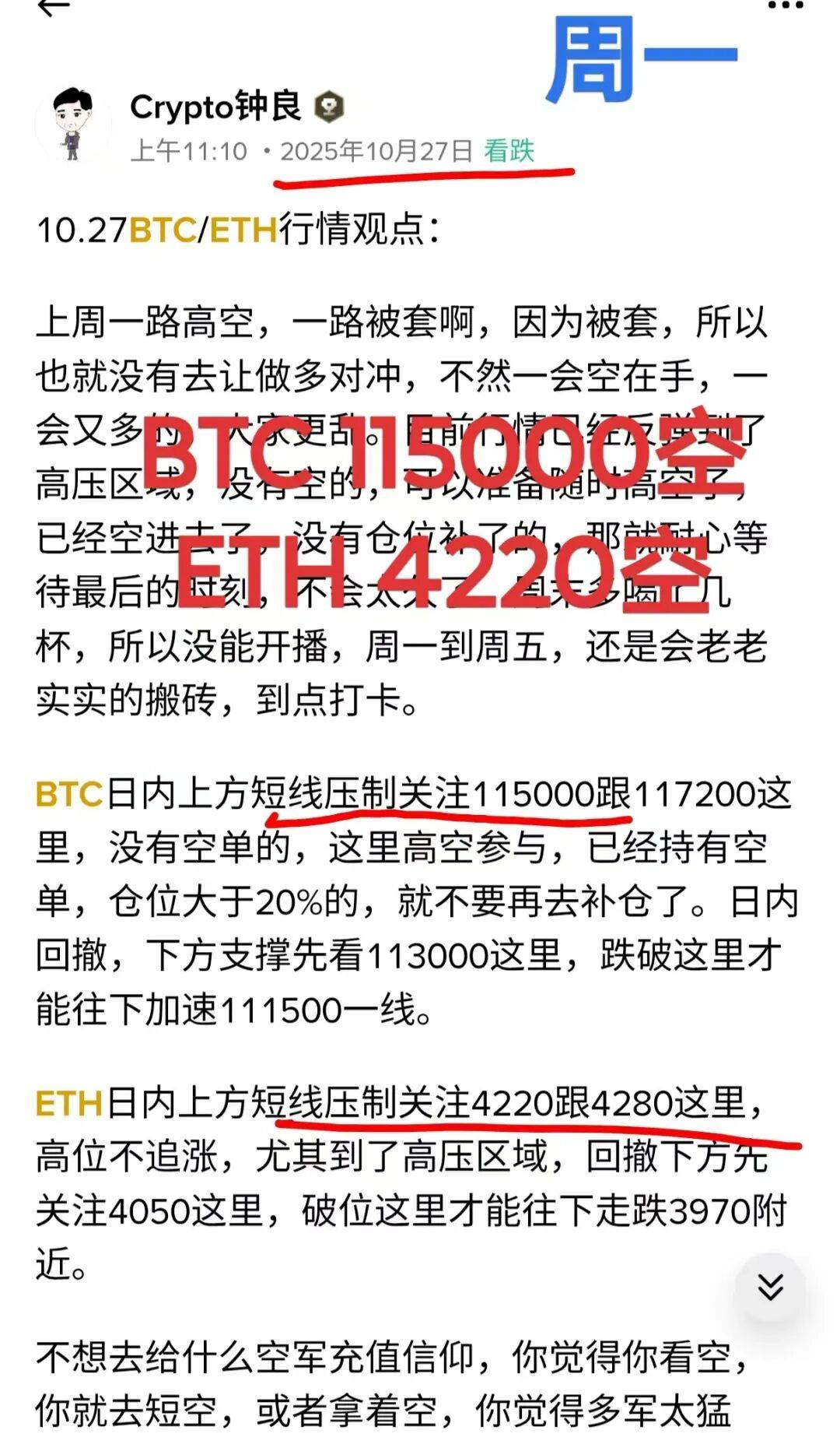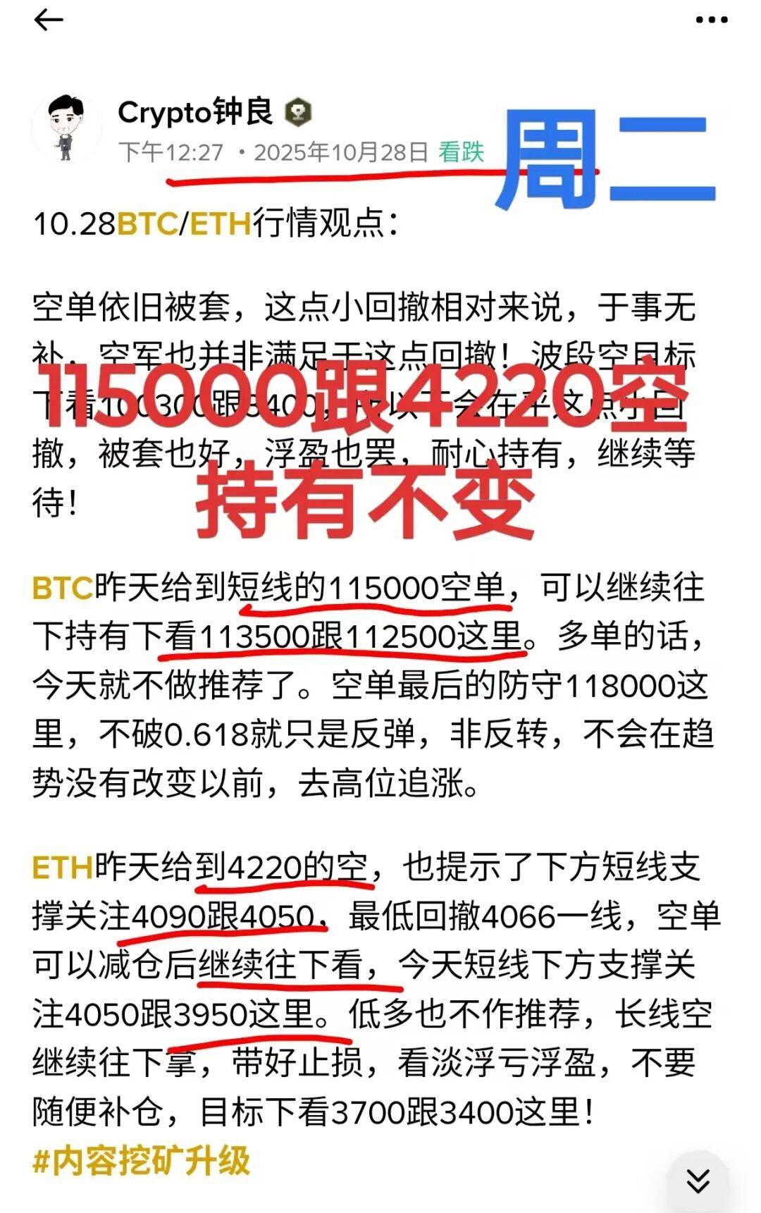 The early morning retracement stopped at the low of 106200, and then started to rebound. The strength of the rebound is not small, and the current price has reached 10930 Near 0, the short orders given to everyone yesterday morning on Thursday were 111,500 short, Wednesday was 113,200 short, and Monday was 115,000 short. This wave of short orders was not satisfying, and the long-term short position is 100,300.![]() Bitcoin is currently trending at the V level on the hourly chart. The daily K-line has been down for 4 consecutive times. The Bollinger Bands have limited space for the lower rail. Although it is still opening downward, the rebound is not a reversal. The rebound is for a better decline. Otherwise, there is no chance to enter the market at high altitudes. The short positions at high positions have been reduced, how can there be a chance to cover positions? ![]() The upper side suppresses and focuses on 111300 and 112400. The high-altitude entry layout is around here. The lower target is 109000, 107000 and 105000. ![]() The top of Ethereum should focus on 3940 and 4030. The high altitude will enter the market here. The target is 3830, 3750 and 3600. ![]() |