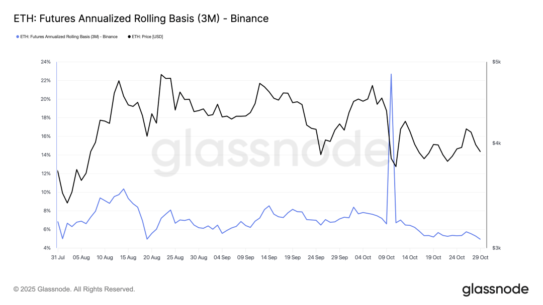 Ethereum (ETH) has been trading around $4,000 for the past two weeks, a period of consolidation following the Oct. 11 flash crash to below $3,500. Ethereum traders are assessing the possibility of further bullish momentum after the Federal Reserve confirmed a 0.25% rate cut and the end of quantitative tightening. ![]() ETH/USD 4-hour chart. Source: Cointelegraph/TradingView Ethereum price lacks sustained bullish sentimentEthereum futures currently trade at a 5% premium to the standard ETH spot market, reflecting lower demand from leveraged buyers. Under neutral market conditions, contango is typically between 5% and 10% to compensate for the longer settlement period. More worryingly, even the recent recovery to $4,250 has failed to restore sustained bullish sentiment among traders. ![]() Ethereum annualized futures, three-month rolling basis. Source: Glassnode The bearish trend in Ethereum futures coincides with U.S. Ethereum spot exchange-traded fund (ETF) outflows that have dominated since mid-October. Net ETF inflows of $38 million on Monday and Tuesday failed to generate any bullish momentum, leaving traders questioning whether the $10,000 ETH price target remains realistic for this cycle. ![]() US Spot Ethereum ETF daily net flows, USD. Source: SoSoValue Ethereum’s failure to remain above $4,000 can also be attributed to declining Ethereum network fees, although this issue affects the entire cryptocurrency market. ![]() Blockchains ranked by seven-day fees, USD. Source: Nansen Ethereum chain fees totaled $5 million over the past seven days, down 16% from the previous week. In comparison, BNB chain fees dropped by 30% and Tron dropped by 16%. The number of active addresses in the Ethereum base layer dropped by 4% during the same period, while Tron increased by more than 100%. “Classic Bear Trap” or ETH price heading lower?Data from Cointelegraph Markets Pro and TradingView indicate that Ethereum price has recorded its third consecutive red candle on the daily chart. Ethereum's multiple attempts to rally have been rebuffed by resistance at $4,000, prompting traders to wonder whether ETH's rally is over or is simply entering a technical pullback phase. “$ETH has once again lost support at $4,000,” analyst Ted Pillows said in an X post on Thursday. Pillows noted that Ethereum fell despite “a 0.25% Fed rate cut, quantitative tightening ending in a month, and US-China trade talks” all taking place in the past 24 hours. The accompanying chart shows that the next level of defense for ETH is $3,800, losing which would spark another round of selling, first into the $3,500-3,700 demand zone and then towards the $3,354 low reached on August 3. On the upside, recapturing $4,000 will boost bulls’ confidence to focus on the $4,200 and $4,500 hurdles before moving back to all-time highs above $5,000. Ted Pillows added: “Either this is a classic bear trap or the crypto market is going to drop significantly. ” ![]() ETH/USD daily chart. Source: Ted Pillows Analyst Fibonacci Trading said that “a drop to $3,300 would still be viewed as a healthy pullback in the uptrend, supported by the EMA cloud,” as shown on the weekly chart below. “It would be a real show of strength if the bulls can defend support here and prepare for the next attack on resistance. ” ![]() ETH/USD weekly chart. Source: FibonacciTrading Anonymous analyst Cactus believes that as long as bulls hold on to the support range of $3,800 to $4,200, Ethereum's upward trend will remain solid and "a strong fourth quarter is still expected." According to reports, bulls will have to push the price above the 50-day simple moving average (SMA) at $4,200 to show strength and confirm the start of the next leg to the upside. Golden Elephant was born for the continuous improvement of Web3 ecology! Golden Elephant, focusing on Web3 ecological system construction and operation! Pay attention to the golden elephant! Contact us! Receive information and join the group…… Please scan the code to add Xiang Xiaosuke ![]() |