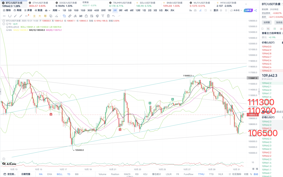 Review of yesterday's BTC market. After yesterday's short order profited and left the market in the morning, today's analysis pointed out that the lower support level continues to focus on 109800, and it is recommended to go long in the range 109500-109800. , BTC directly inserted the needle at noon, and the lowest fell to 107800. The market was relatively fast and it was chosen to wait and see to avoid continuing to fall. After the 15-minute short-term positive closing, long orders decisively entered the market around 108800. At present, BTC has risen to a maximum of around 111600, and long orders have steadily taken profit at 2800 points to leave. Go short first and then go long, and take profit for all long and short positions. This morning, I went long near 108800, with a maximum of around 110100. There was also a profit of 1300 points for the long order. Today's BTC market analysis shows that in the early morning, BTC dropped to the lowest level near 106,300 and rebounded. The current increase is nearly 4,000 points, with the highest reaching 110,100. It is currently under pressure at the short-term suppression level of 110,300 and has fallen back. The trend chart is as shown in the figure. During the day, continue to focus on the trend suppression level near 110300. It is recommended to go short directly if the range of 110500-110300 rebounds and does not break. If the level is broken, go short again near 111300. ; Below, focus on the trend support level near 106500. It is recommended to go long if the 106500-106800 range is not broken. If the level is broken, look for more near 105000. Technically, the daily line received a yin yesterday. As the previous analysis is consistent, all short and short orders are firm and profitable. Yesterday, BTC plunged for the third time. The first two times rebounded and rose. It is expected that BTC will rebound to a certain extent. If it receives a yang again today, everyone can start to turn to the bullish direction starting tomorrow. The target is to first focus on the suppression formed by the intersection of the middle track and MA10 near 111000. There are currently 2 positive bars collected in a row in 6 hours, with pins inserted below, and red 13 appears below the TD indicator, which is a bullish signal. In the short term, pay attention to whether the trend suppression near 110300 is broken upward. If the level is broken, look at the suppression level formed by the intersection of the middle rail and MA30 near 112000. After a cross was collected below in the early morning of 3 hours, the reversal signal was bullish. The current increase is 4,000 points. If a negative cross is collected in the afternoon, everyone can start to go short, with the target focusing on the lower track of 106800. To sum up, everyone can continue to watch a wave of corrections to repair the market during the day. The general trend is also bearish, and the operation is mainly short selling at rebound highs. BTC today’s operation strategy: 1. Shorting in the range of 110500-110300, target 109000-108000, stop loss 111000 2. Go long in the range of 106500-106800, target 108000-109500, stop loss 106000 Risk warning: The market is changing rapidly, and transactions need to be flexibly controlled. Investment is risky, please operate with caution! ![]() ![]() ![]() |